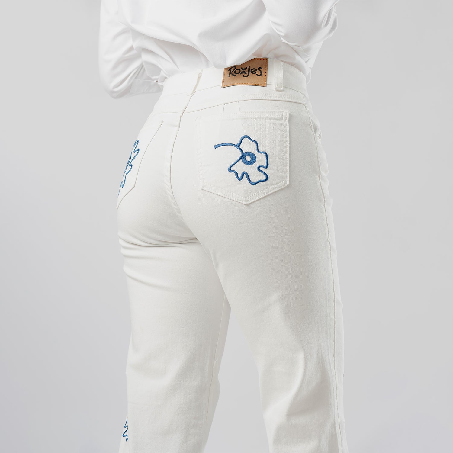 Nuestro modelo Wide Leg está elaborada en tela Drill nacional semi-stretch, cuenta con pinzas posteriores, cuatro bordados en la parte delantera y cuatro bordados en la parte posterior.